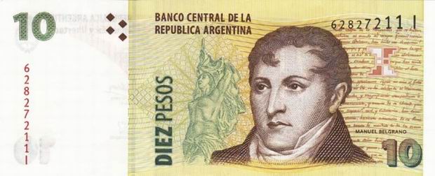 Ten Pesos - paper banknote - 10 Peso bill Front of note  |
