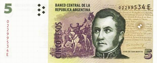 Five Pesos - paper banknote - 5 Peso bill Front of note  |