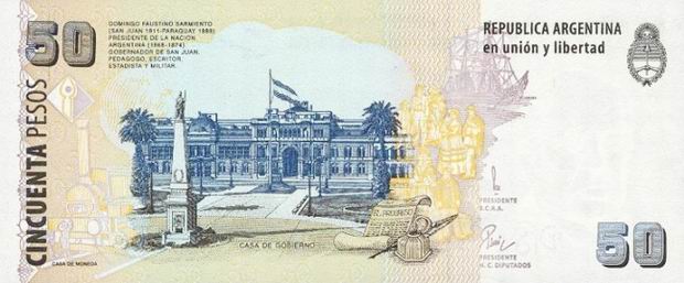 Fifty Pesos - paper banknote - 50 Peso bill Back of note  |